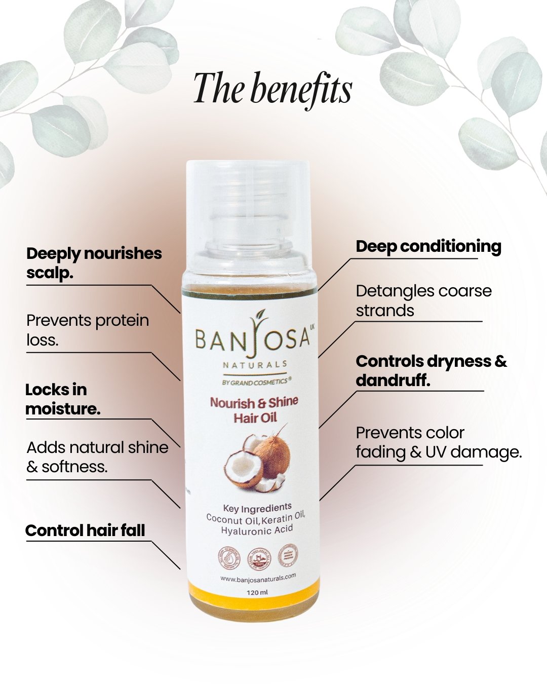 A deeply nourishing hair oil with virgin coconut oil and advanced botanical actives that restores moisture, enhances natural shine, and leaves hair soft, smooth, and healthy-looking.